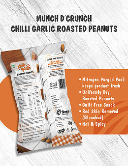 - For those moments between meals, we offer a delicious healthy snacks in the form of peanuts seasoned with red chilli and garlic. Our authentic peanut munchies do not contain any artificial flavour or colours which gives you a guilt-free snacking experience that you are sure to love.